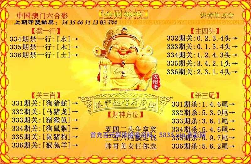| 334期:三行中特【木土火】开:猴46中 |